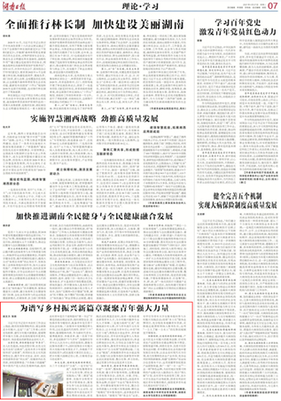本网讯人文学部  李绮航  陈胤嘉)近日,《湖南日报》刊发了我院青年教师赵文力同志的理论文章《为谱写乡村振兴新篇章凝聚青年强大力量》一文。