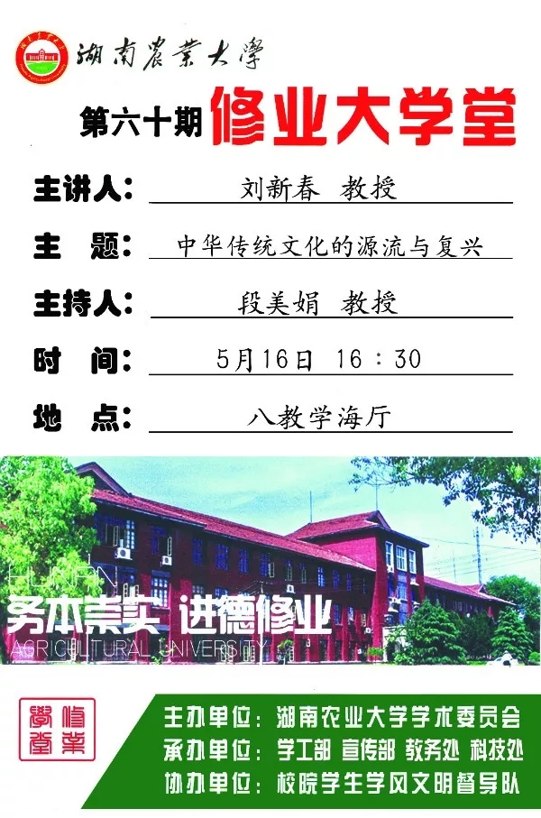 【修业大学堂第六十期】刘新春教授主讲:“中华传统文化的源流与复兴”