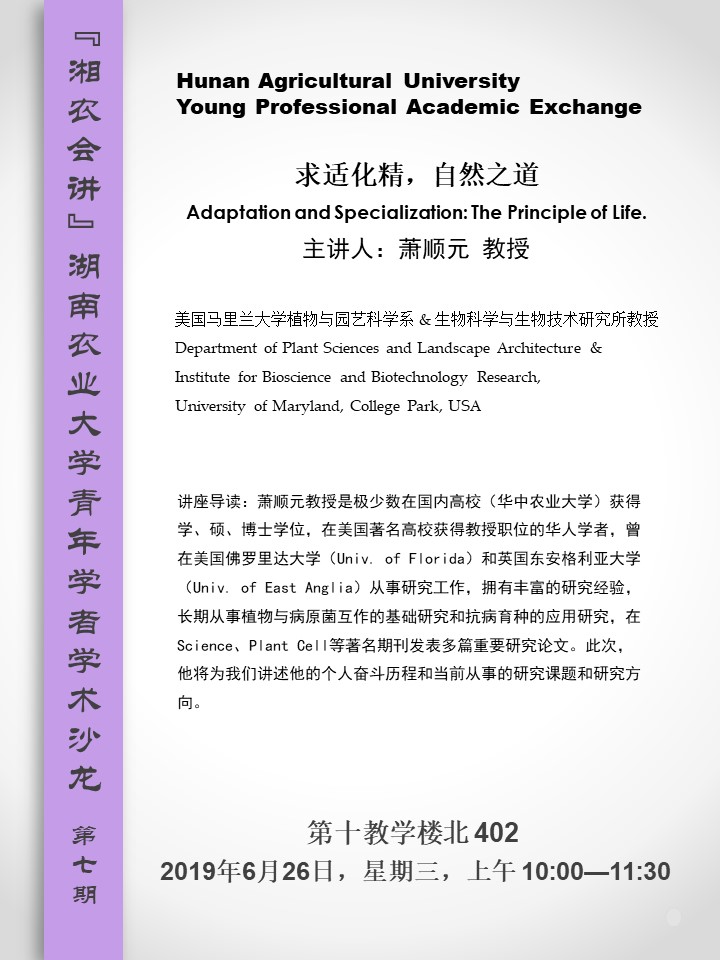 【“湘农会讲”湖南农业大学青年学者学术沙龙第七期】Adaptation and Specialization: The Principle of Life