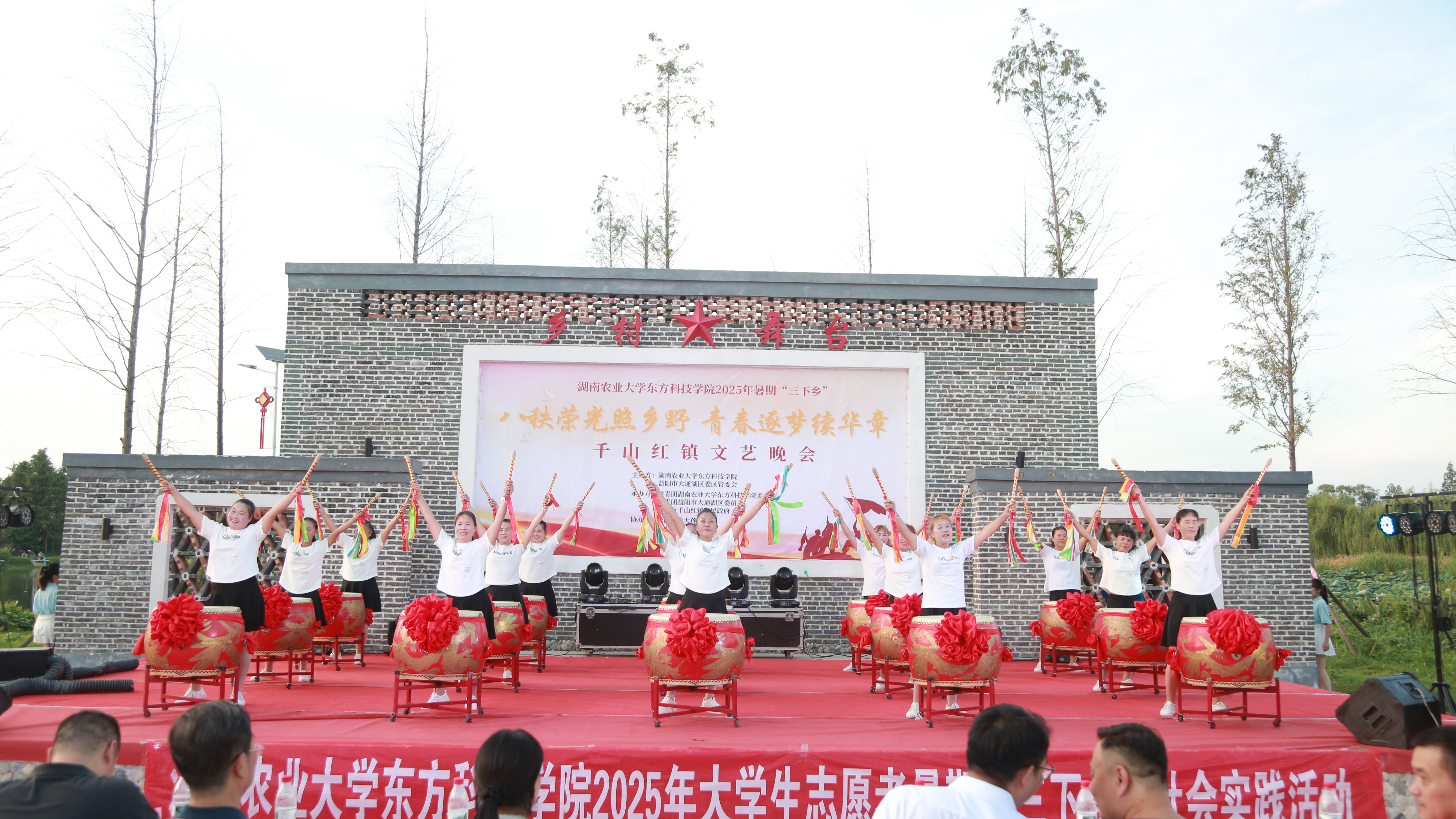 本网讯(团委 周贵萍 周可盈 )8月26日晚,“八秩荣光照乡野,青春逐梦续华章”学院2025年暑期“三下乡”文艺晚会在大通湖区千山红镇大莲湖村村民委员会乡村大舞台举行。大通湖区委区管委会、千山红人民政府相关领导出席活动,当地群众观看晚会,现场座无虚席。